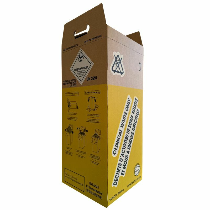 Aménagement : Sache en Polyéthylène Basse Densité (PEBD) Jaune collée sur les parois intérieures de la caisse